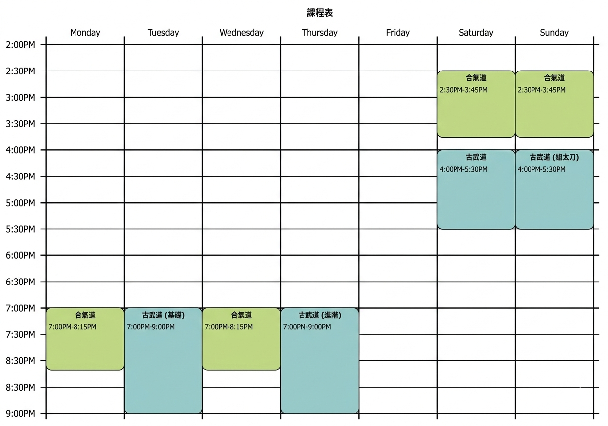 4.):練習超過一個月才可以參加進階的古武道課程5.):新來的學生一定要先上「體驗課程」才能加入一般群組課程。資訊在報名單裡